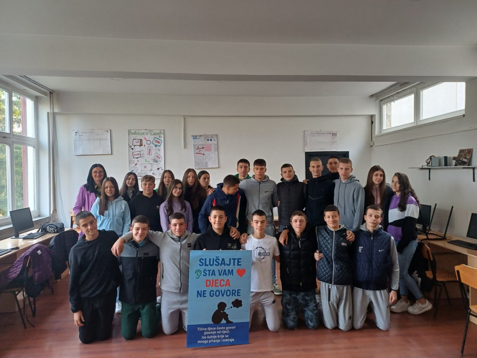 Дјеца не говоре увијек ријечима – често их разумијемо кроз њихове погледе, гесте или тишину. Управо зато су ученици Iет са својом разредном Милицом Миловић дали допринос кампањи; осмислили и израдили плакат са снажним порукама. Њихов рад подсјећа нас да је свако дијете важно, да заслужује пажњу, подршку и да буде саслушано.