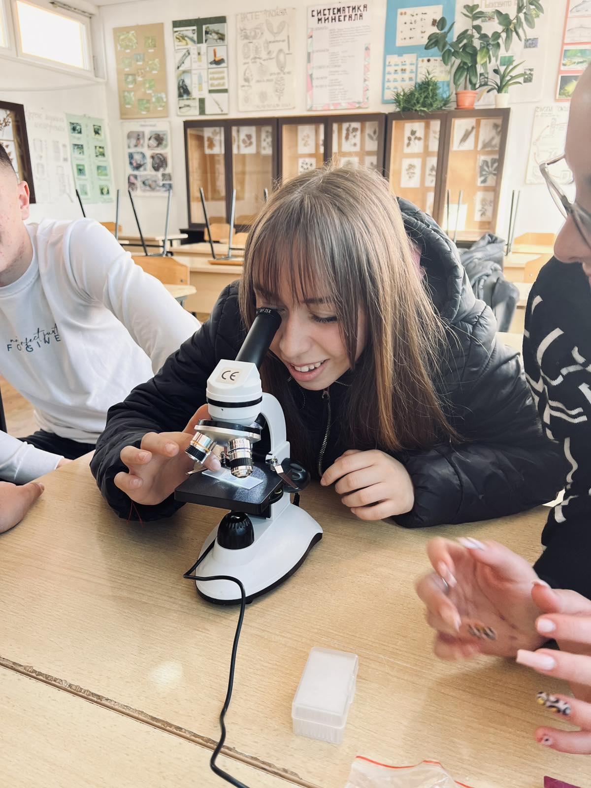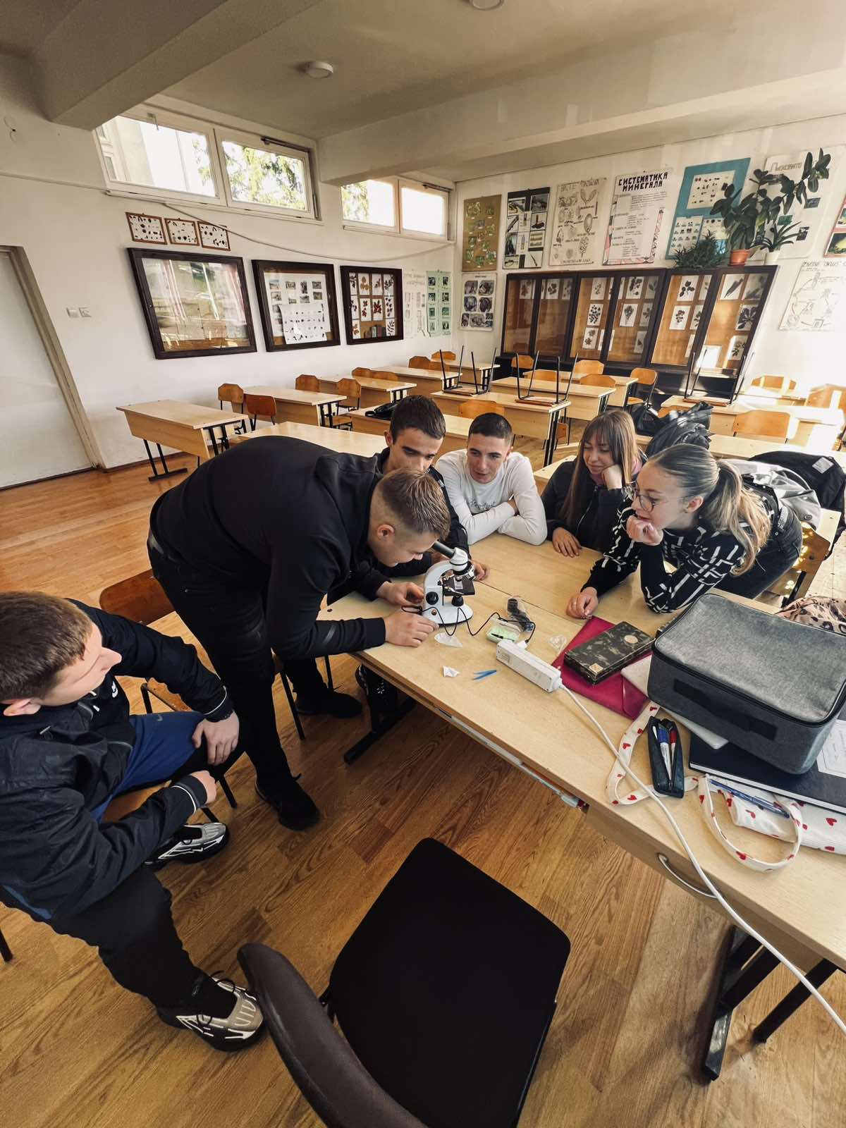 Један од најзначајнијих сегмената рада било је практично упознавање са микроскопијом. Уз коришћење савременог микроскопа новије генерације, који омогућава високу резолуцију и детаљно посматрање биолошких структура, ученици су имали прилику да самостално праве и анализирају различите препарате. Израђивали су размазе, посматрали трајне препарате, као и узорке из природе. На тај начин развијали су вјештине научног посматрања, логичког закључивања и педантног лабораторијског рада.