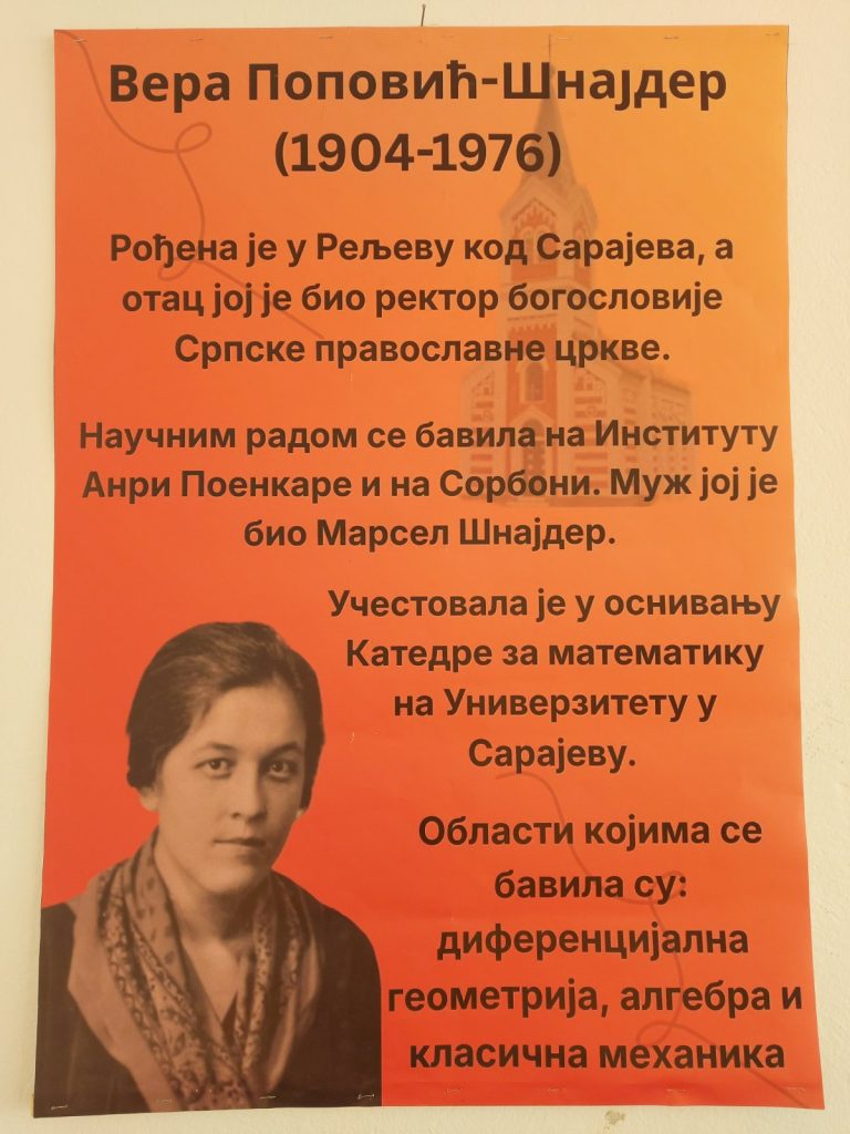 У изложбеном простору посјетиоци су могли да упознају биографију Вере Поповић Шнајдер, прве научнице математичара из Босне и Херцеговине.